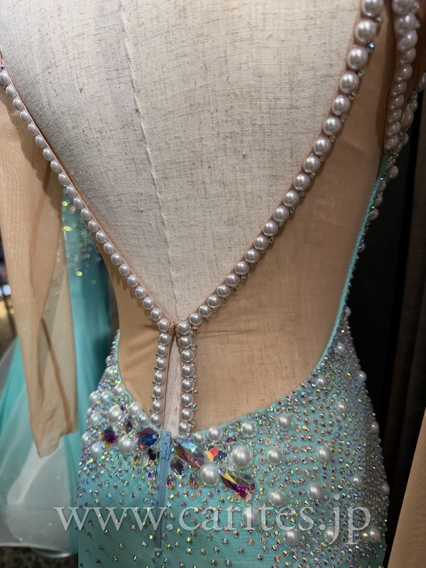 ホワイト部分のスカートにはラメ生地を使用し、キラキラと輝きます。